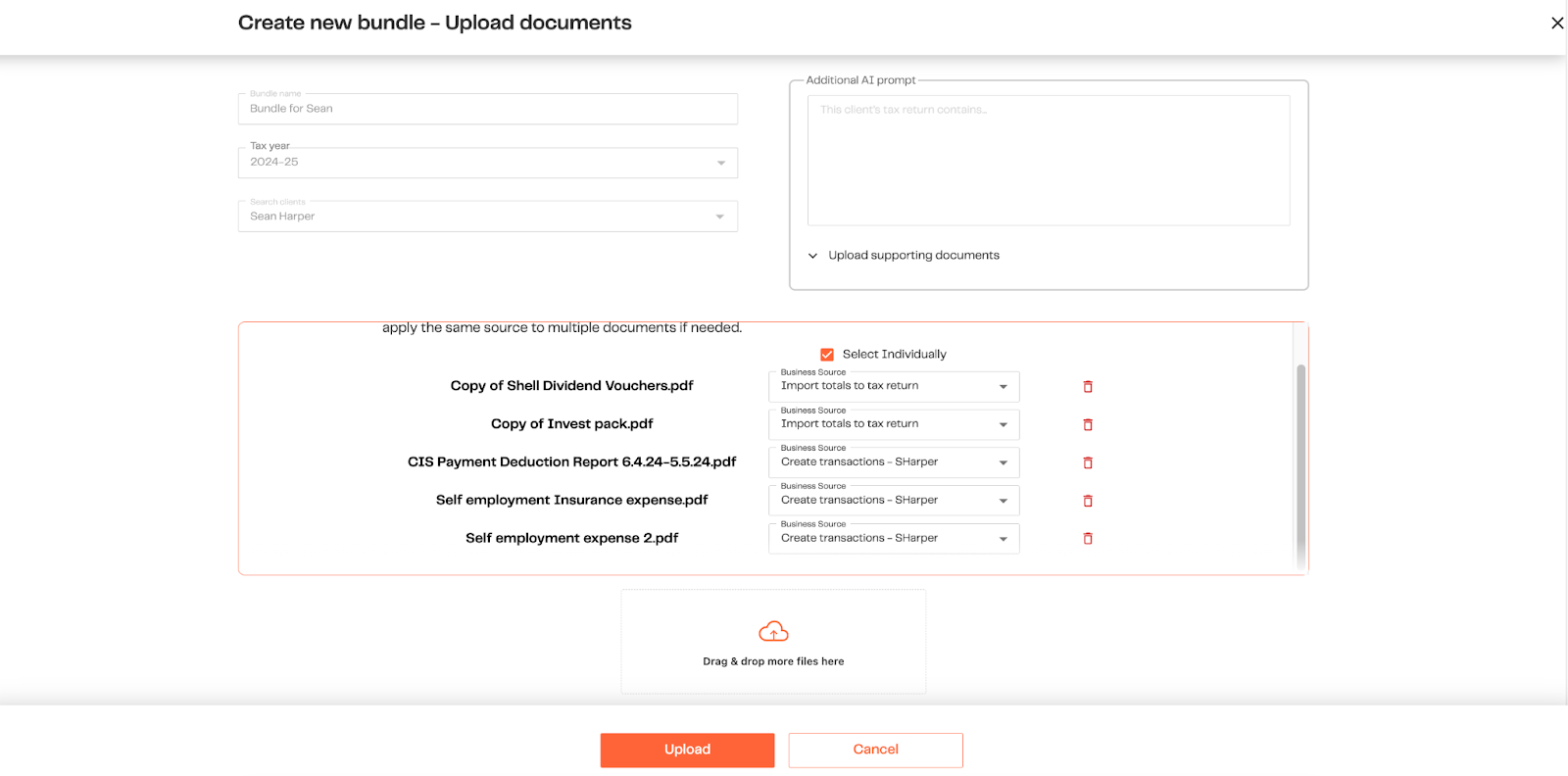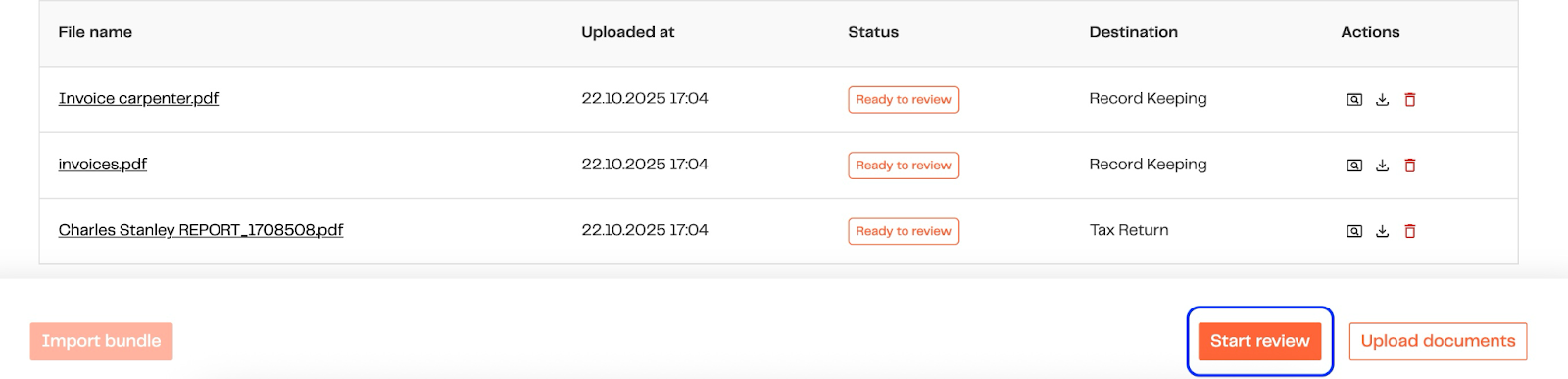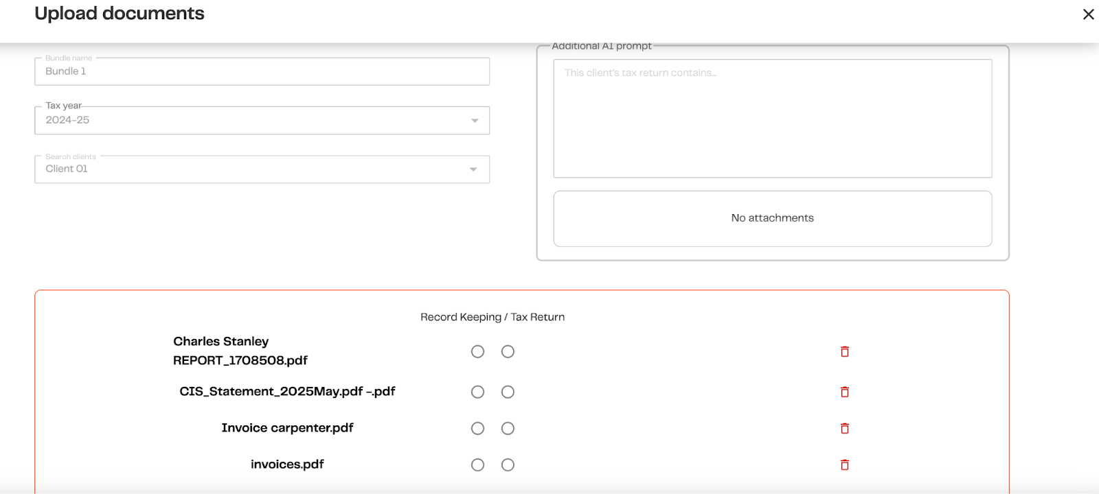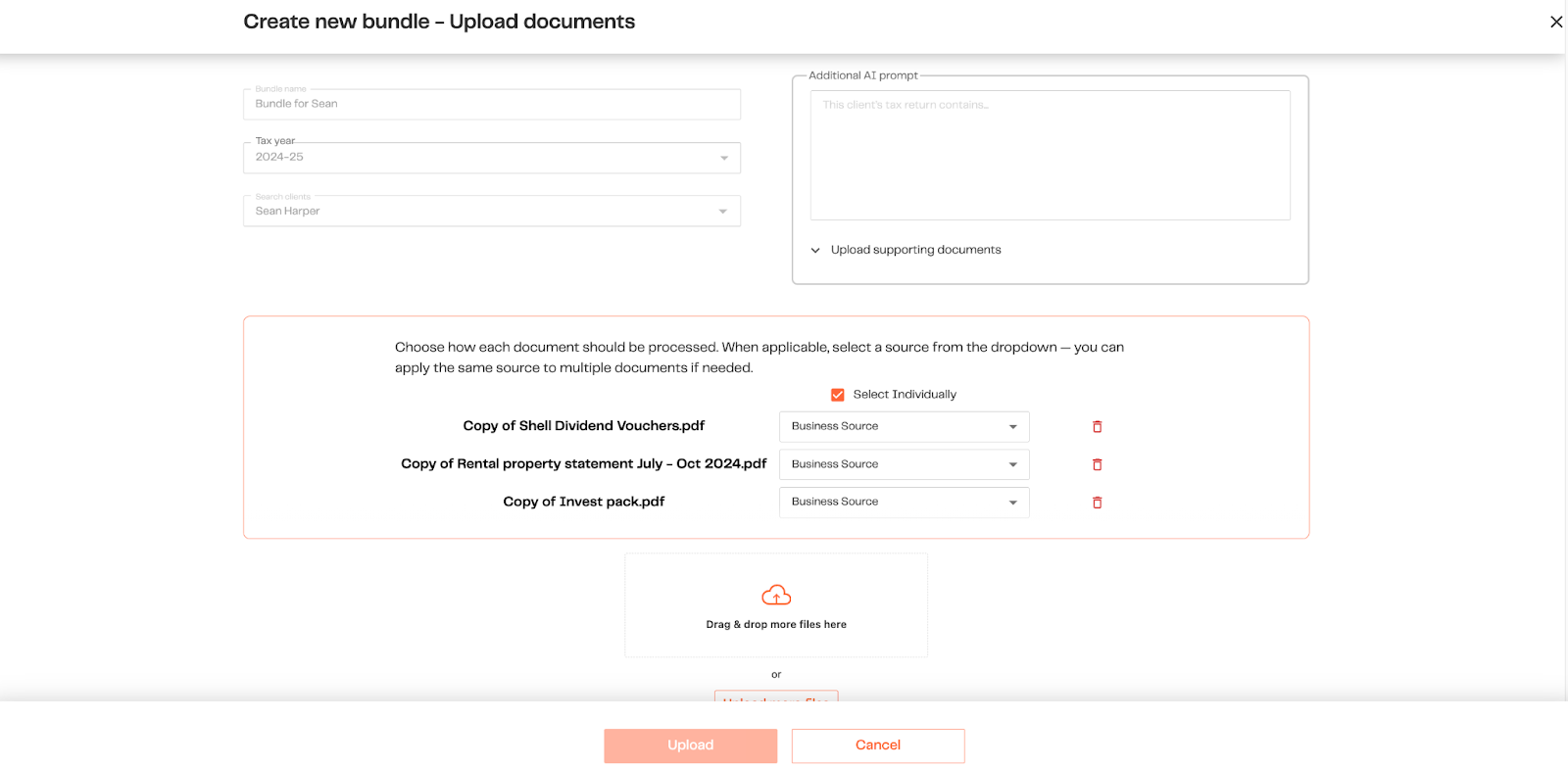 Once you have created your bundle, you will be taken to the page where you can upload a set of documents.