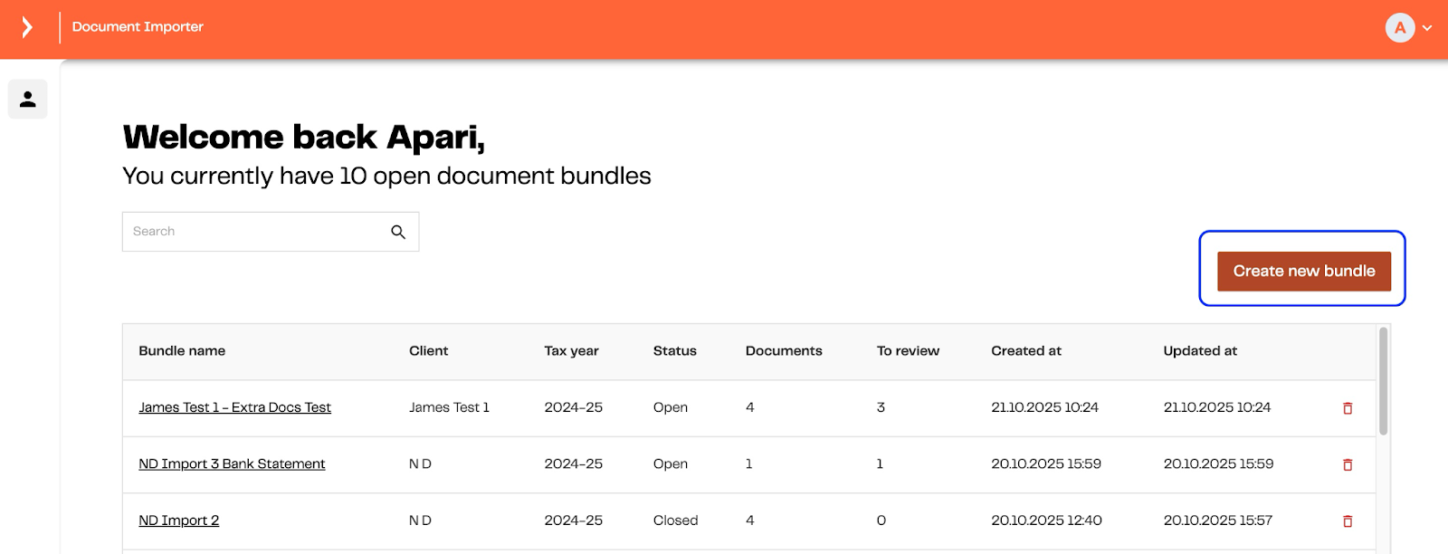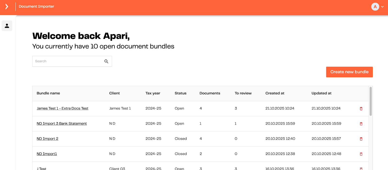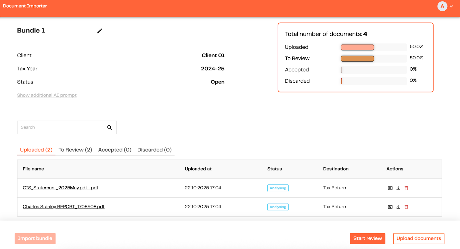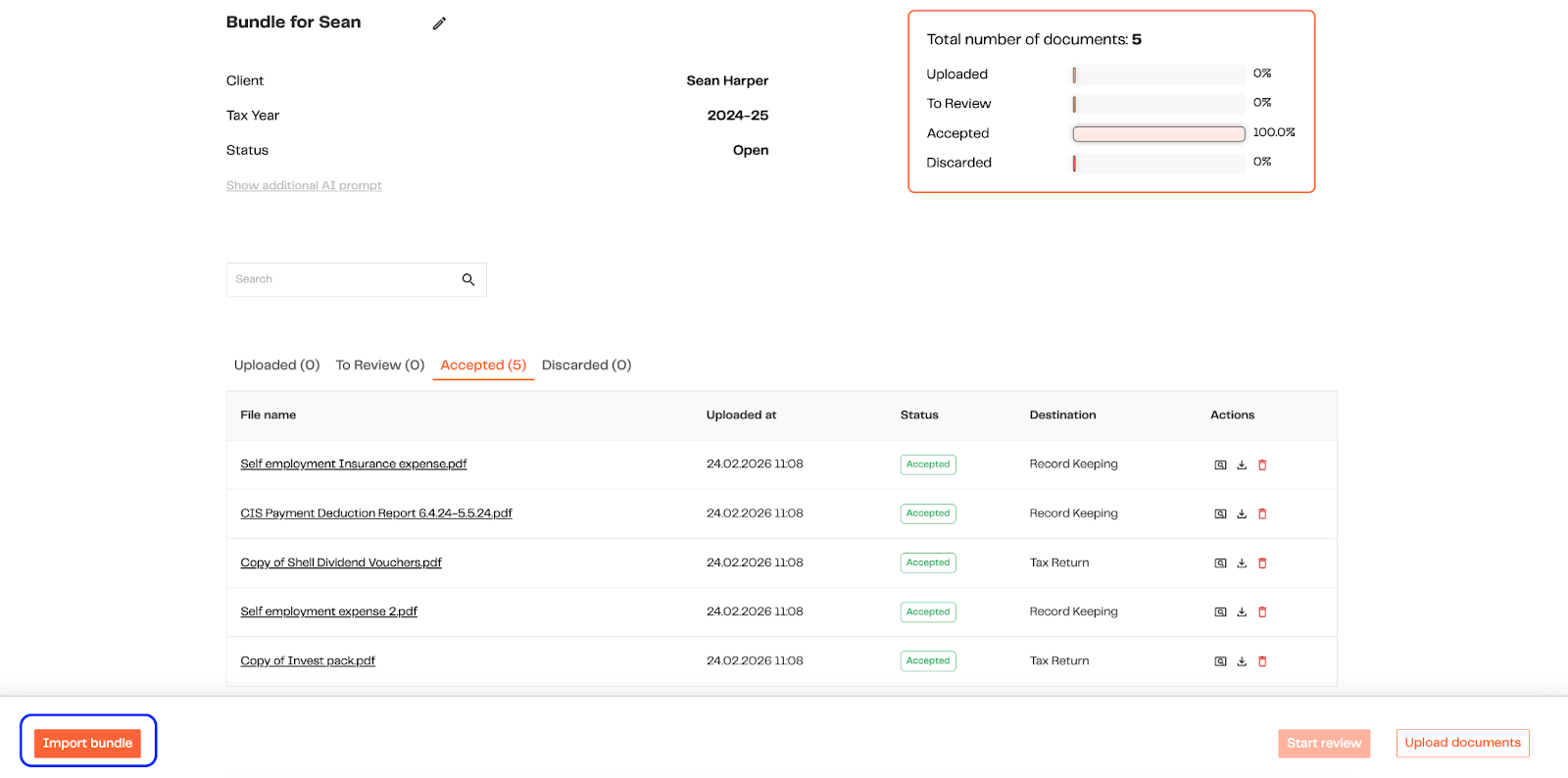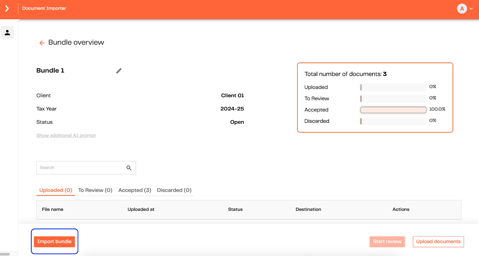 Once you have reviewed each document and either accepted or discarded, you will be returned to the Bundle Dashboard.