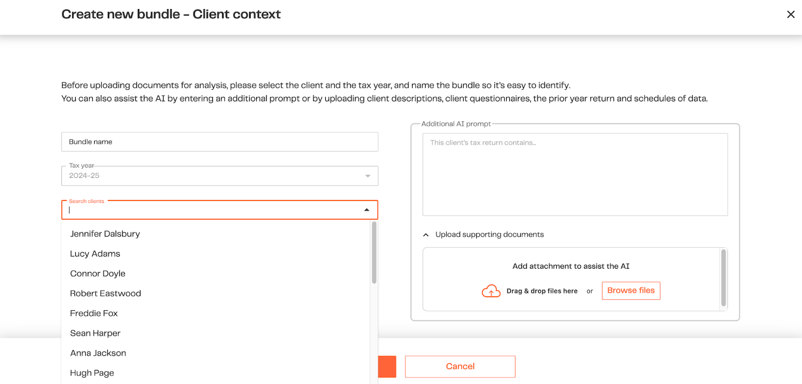 You can provide the AI additional context on the client or any supporting documents to give context on the client (this is optional).