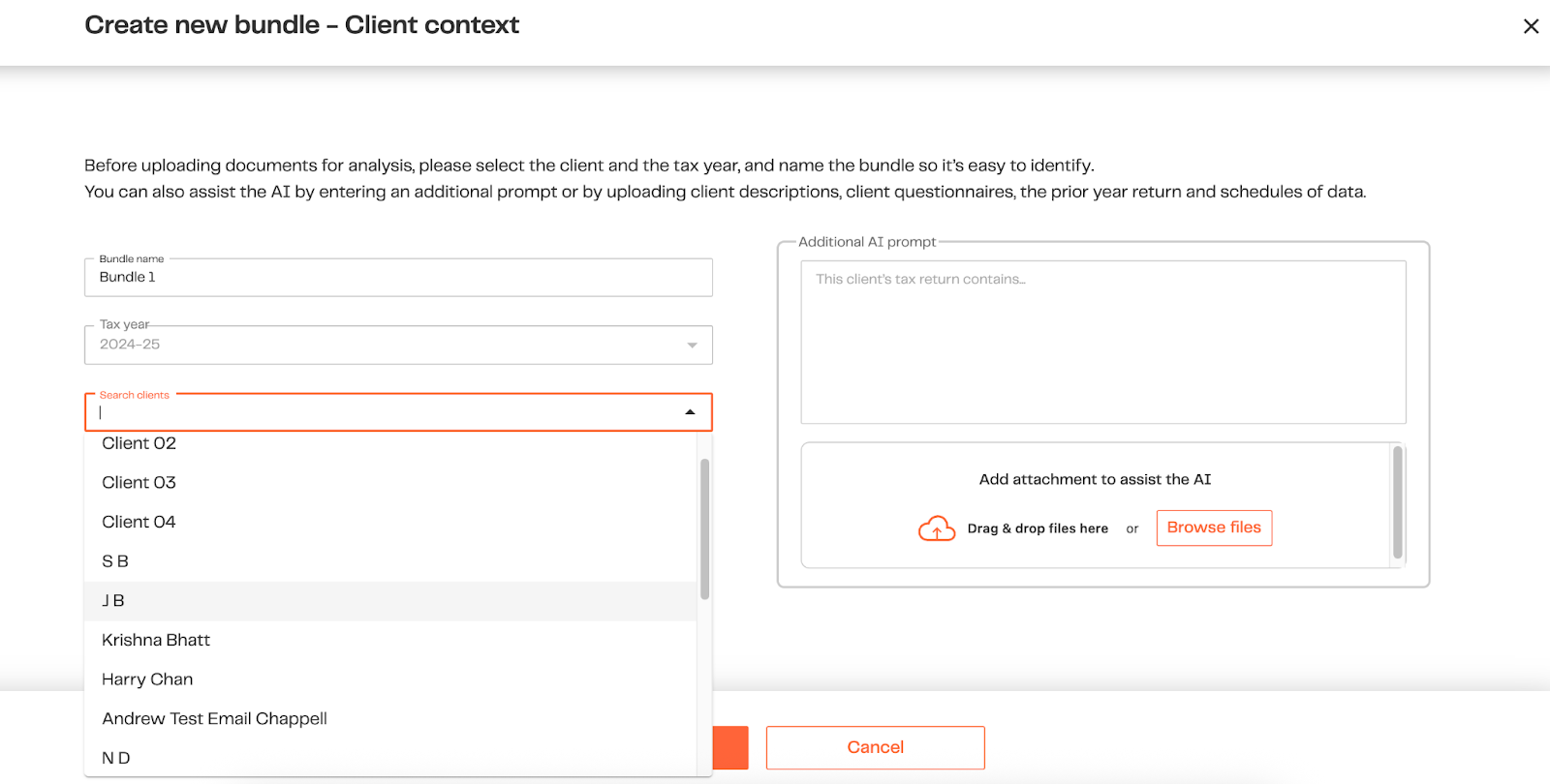 You can provide the AI additional context on the client or the documents you are importing at this stage in the box on the right hand side - this is optional however.